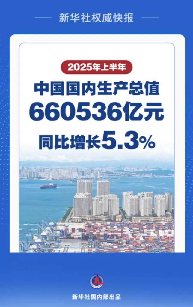 行至年中,中国经济走势备受关注。7月15日,国家统计局发布数据显示,上半年,中国国内生产总值(GDP)660536亿元,按不变价格计算,同比增长5.3%。今年以