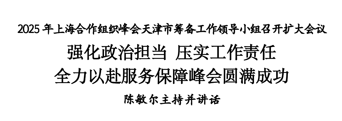 8月26日,2025年上海合作组织峰会天津市筹备工作领导小组召开扩大会议,深入学习贯彻党中央关于办好天津峰会的部署要求,听取当前筹备工作进展情况汇报,部署