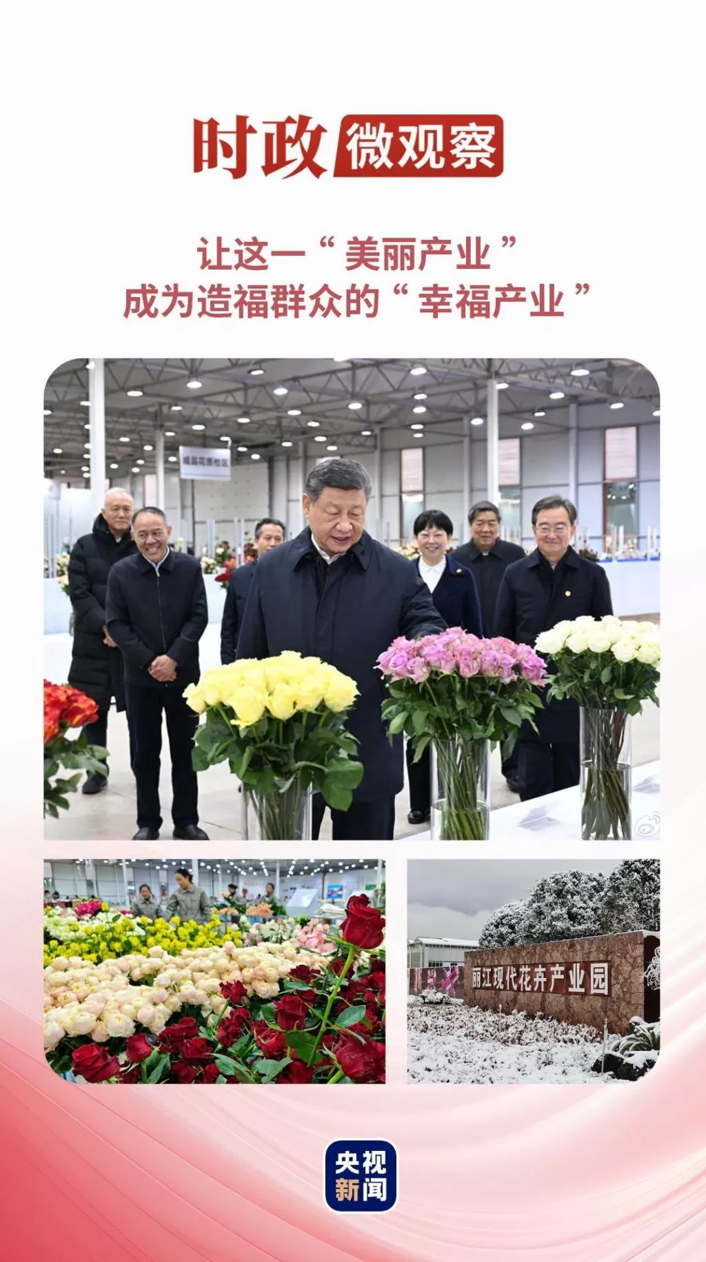 云南丽江古城区,丽江现代花卉产业园里,花开正艳。3月19日下午,习近平总书记来到这里考察调研。当地村民告诉总书记,在这里工作,一个月收入4000多元,旺季可达7