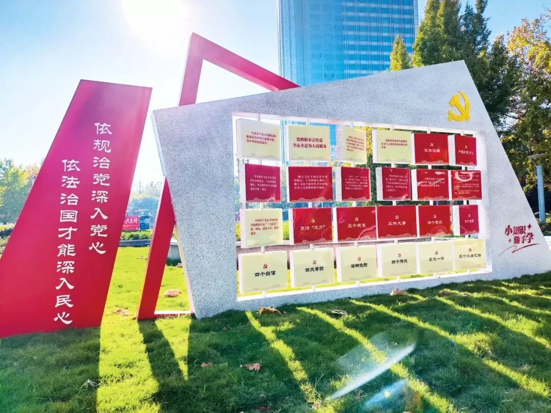 江苏省宿迁市党内法规主题广场。视觉中国供图党的十八大以来,以习近平同志为核心的党中央时刻保持解决大党独有难题的清醒和坚定,站在坚持和加强党的领导、坚持和完善中国