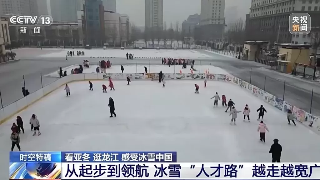 总台央视记者黄达:黑龙江省冰上训练中心不仅是今年亚冬会、短道速滑、花样滑冰、速度滑冰的比赛场地,同时也是黑龙江省冠军的诞生地。目前黑龙江省已走出张虹、范可新等10余位冬奥和世界冠军。在今年亚冬会的中国体育代表团当中,有近三成的运动员就来自黑龙江。与此同时,黑龙江省的两座城市,哈尔滨和七台河还被中国奥委会授予了“奥运冠军之城”,为何黑龙江能够在冬季运动项目中冠军频出?答案之一就藏在这里的街头巷尾。